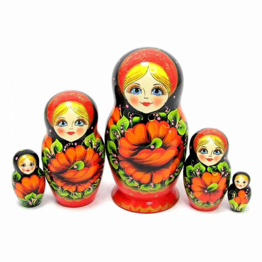 This is set of 5 dolls is handpainted by a professional Russian artist. Availability: ships within 3-5 business days.