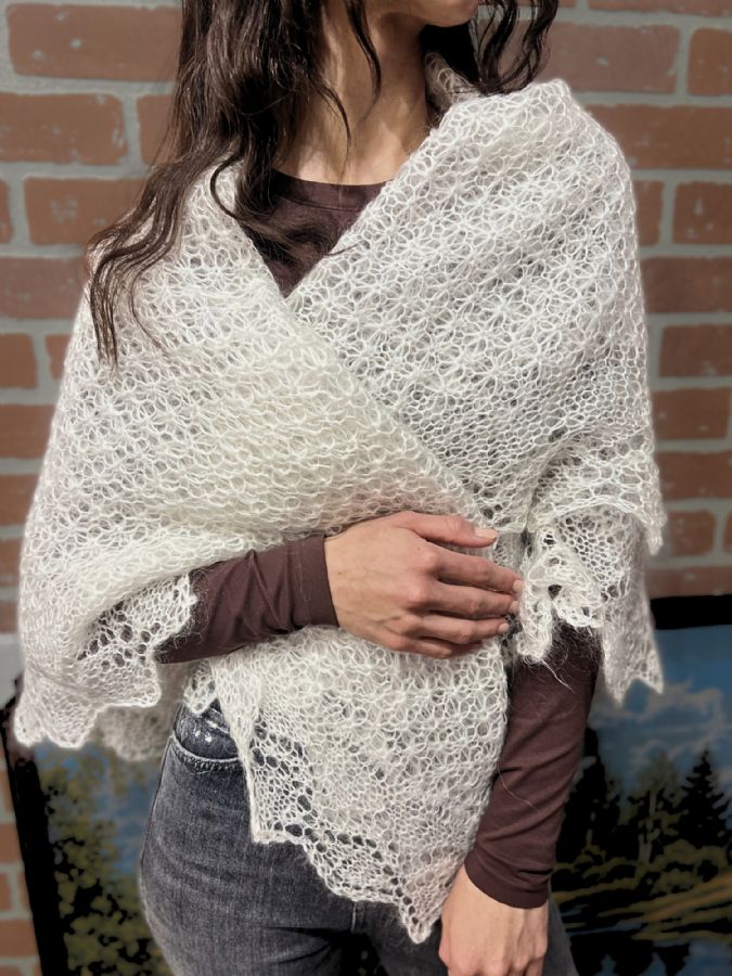 A masterpiece of down knitting craftsmanship, created using ancient Russian patterns. A women's knitted scarf conveys all the beauty of traditional execution. A warm down shawl will be a gift that has no analogues. The scarf is made of the finest fluff wi
