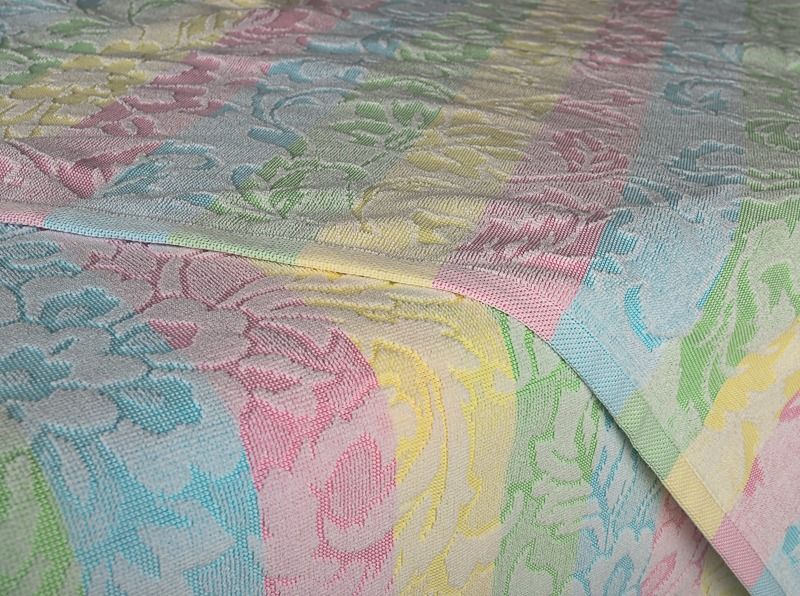 The "Zlata" jacquard terry blanket-sheet features a graceful botanical design in a soft rainbow color palette. Made of 100% cotton with a 400 g/m2 density, it is breathable, absorbent, and warm — ideal for year-round use in the bedroom as a blanket, sheet, or lightweight bedspread.